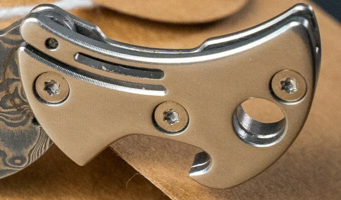 The base model features a stainless steel body and blade. Backers of this Kickstarter project can upgrade to a titanium body paired with a Damascus steel blade for a more premium finish.