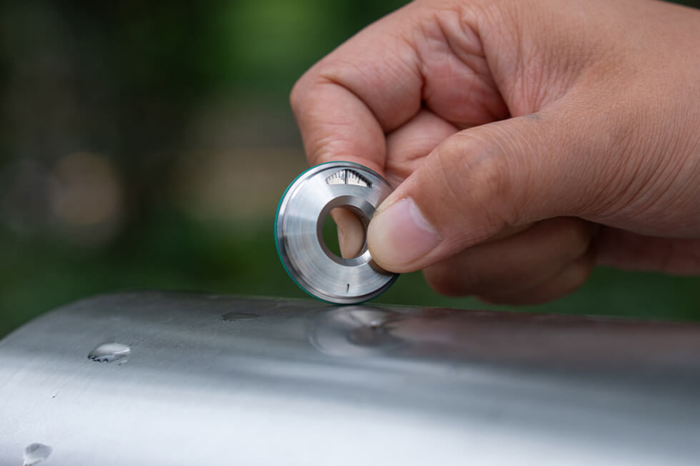 The numbered tick marks on the inner ring visible through a window in the outer ring show the smaller increments. Titaner built on the original’s functional design for the Tiroler 2.0 but gave it a removable silicone O-ring set in a groove around the perimeter of the inner ring. The silicone addition offers better grip control on slick or slippery surfaces like glass and metal. It also prevents scratches or skid marks on the surface.
