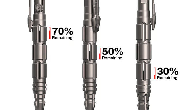 Moreover, the design incorporates an ink window so you can always have an extra cartridge on standby. The Titaner Titanium Pen is compatible with G2-style refills and has precision-guided threads to ensure precise alignment and effortless refills.