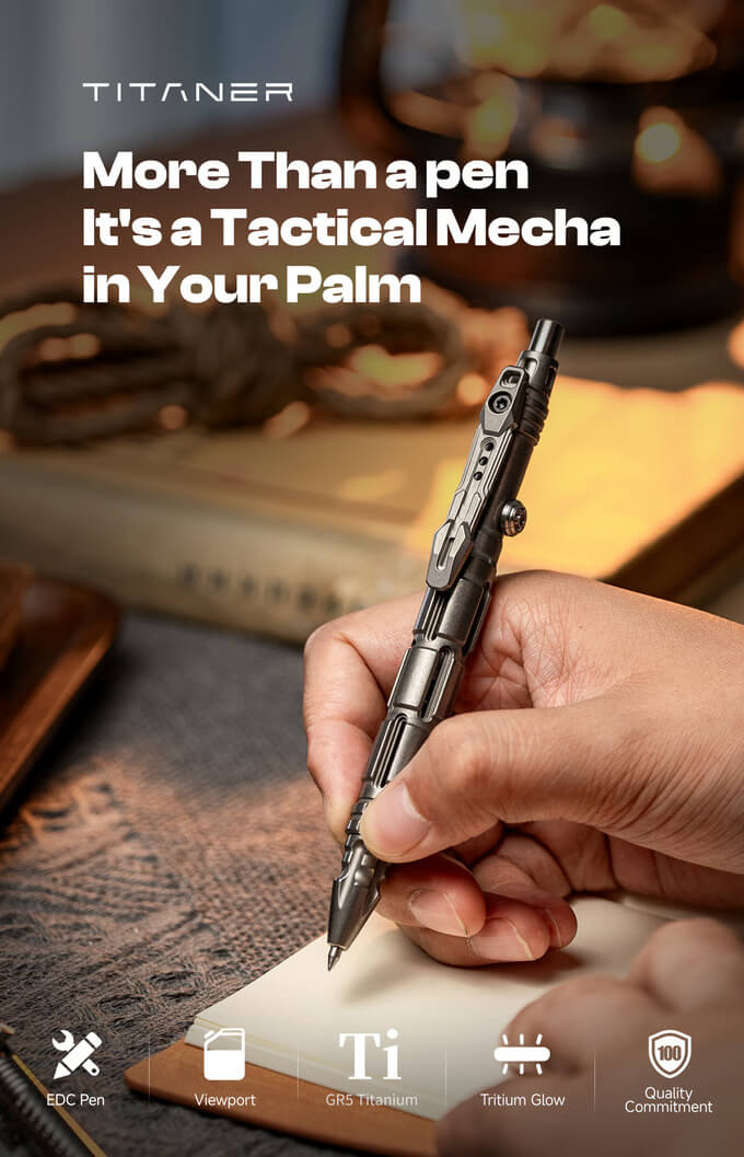 Titaner’s Titanium Pen turns the conventional humble pen ensemble into a tactical mecha designed to stand the test of time. It’s more than a practical writing tool, with enhanced utility seamlessly integrated into its rugged and robust construction.