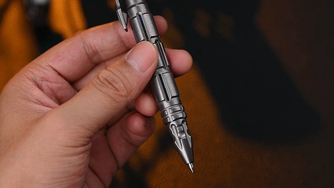 Then when it comes to action, this EDC pen offers a comfortable experience with its ergonomic form. It weighs just right (not too heavy and not too light) and has a secure and natural grip. It doesn’t tire the hand but feels more like its extension.