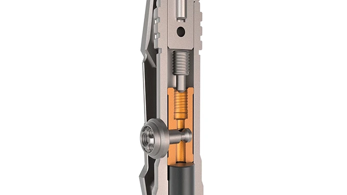 The pen boasts a steampunk-inspired silhouette equipped with a dual-stage bolt-action mechanism that serves as built-in safety to prevent ink leaks or mess or accidental activation. A tactile and fidget-friendly press-down-and-slide motion on the bolt unlocks/locks the pen for use and safekeeping.