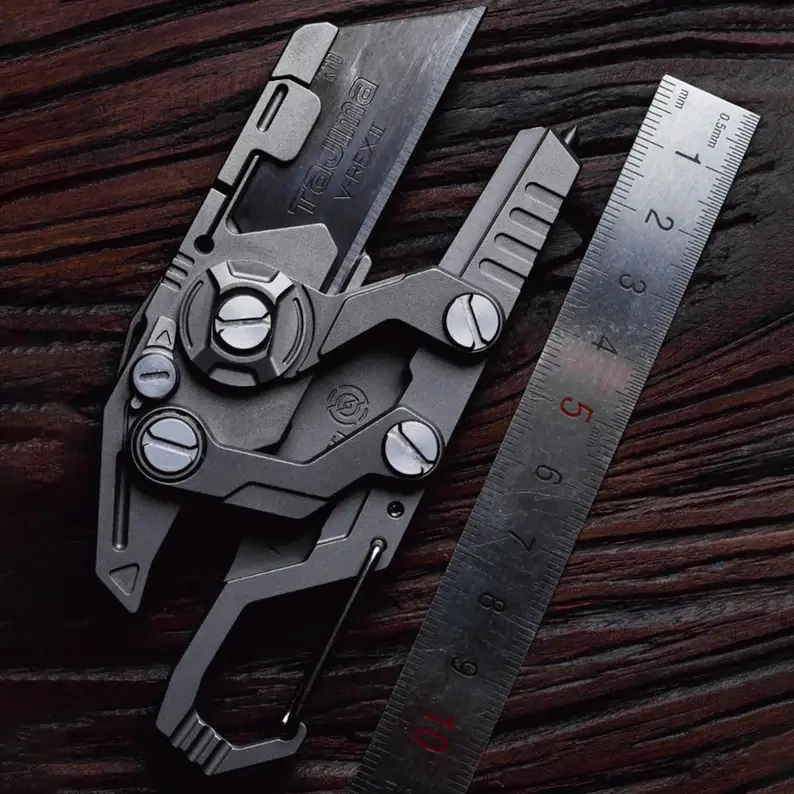 Titaniumedcshop’s Grouper-style Titanium utility knife employs a cool opening mechanism. It opens and closes smoothly using ball-bearing pivots. You can deploy the blade in as quick as 0.5 seconds and it stays that way no matter how long you have been using it. Best of all, its TAJIMA V-REXII blade is replaceable. When it loses its sharpness or becomes blunt, or stained, you can easily swap it out for a new one.