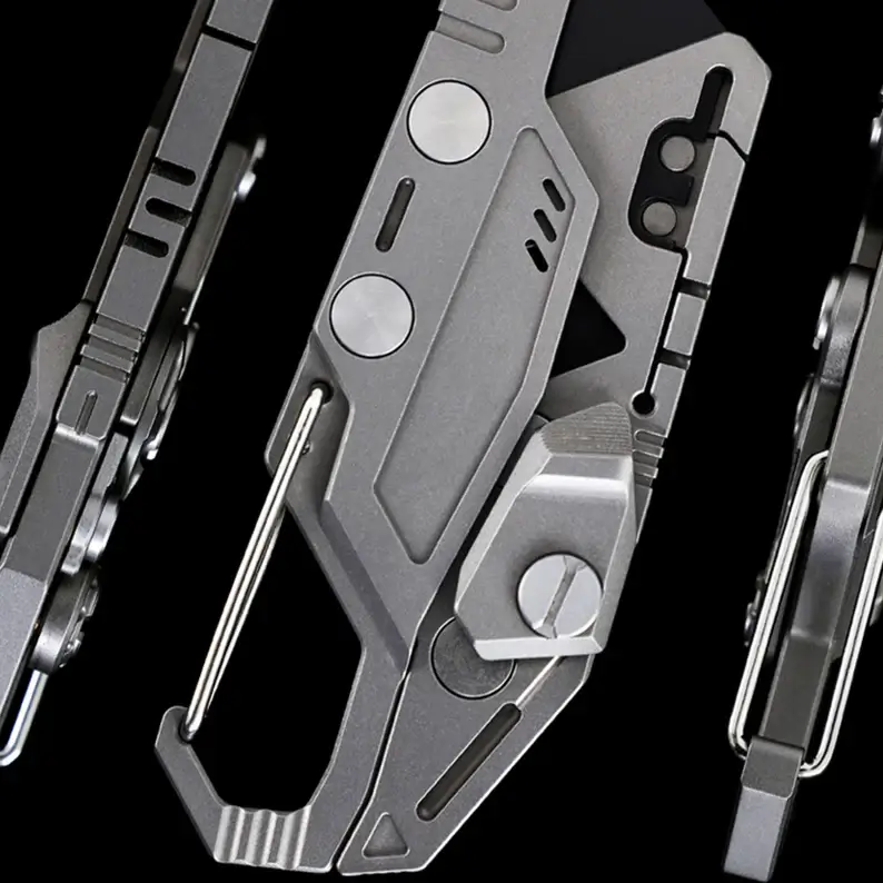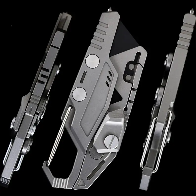 Moreover, Titaniumedcshop’s Grouper-style Titanium utility knife features a built-in carabiner for added portability. This flip knife is great survival gear too because it comes with a tungsten carbide glass breaker and seat belt cutter. It is available in Black, Silver, or what others call Rainbow finish.