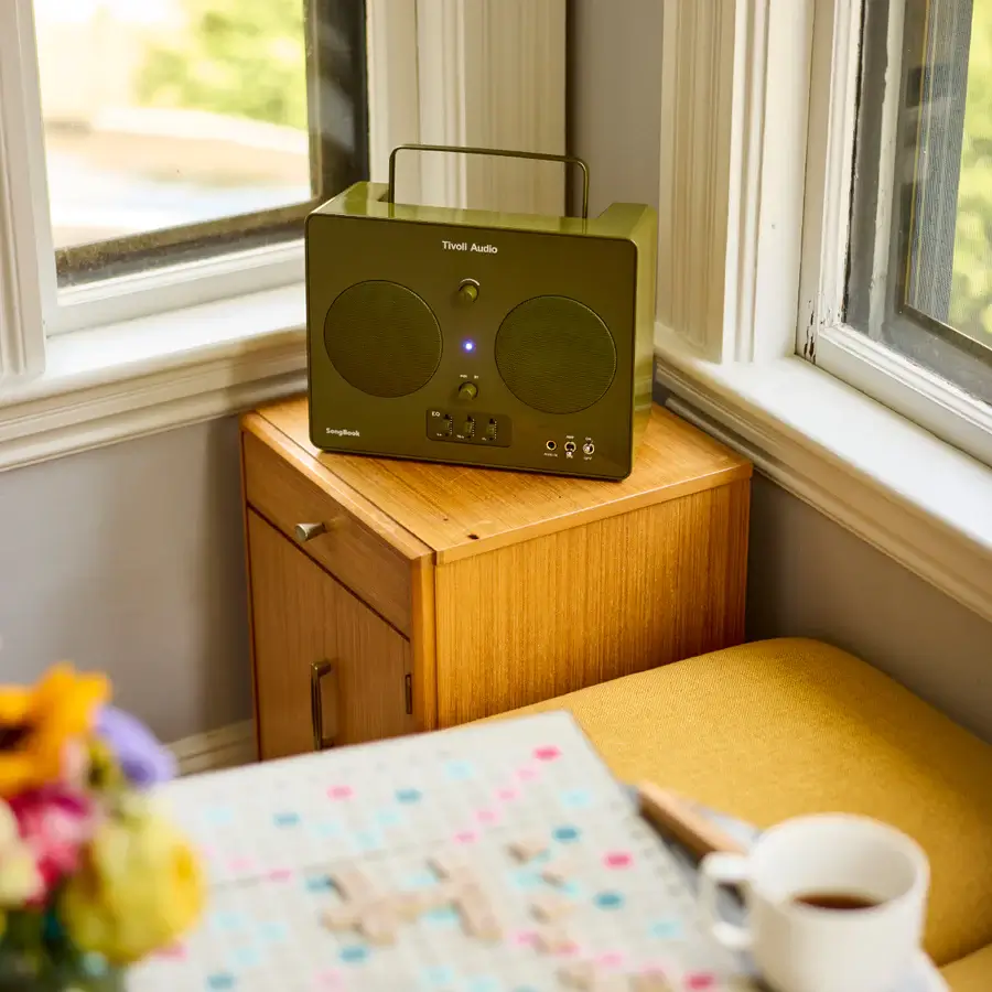 It measures 12” x 9” x 5” and weighs about 6.7 lbs. There’s even a folding carry handle to make transport a breeze. Tivoli Audio goes all in with the design as Songbook does away with modern control configurations. This means digital-sensor push buttons or touch-sensitive panels are out of the question here.
