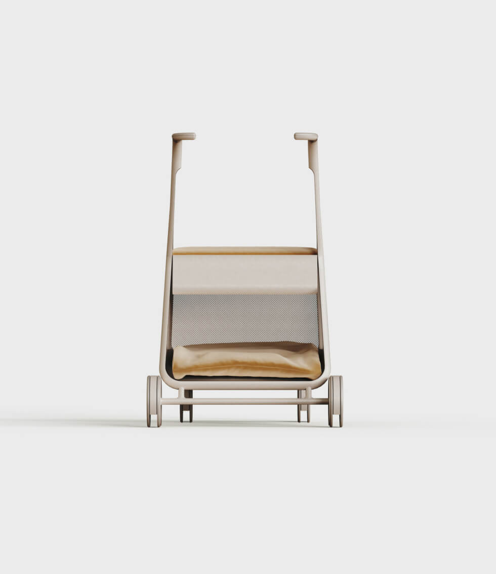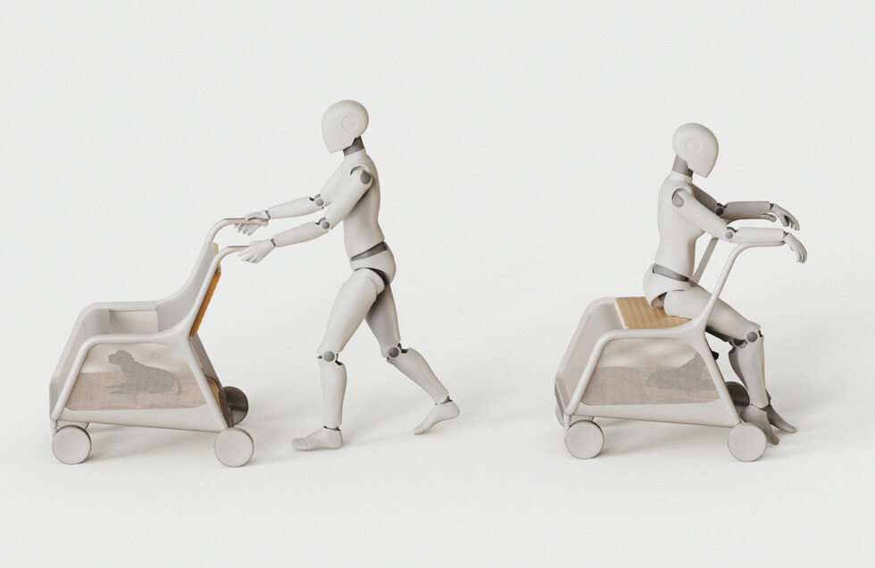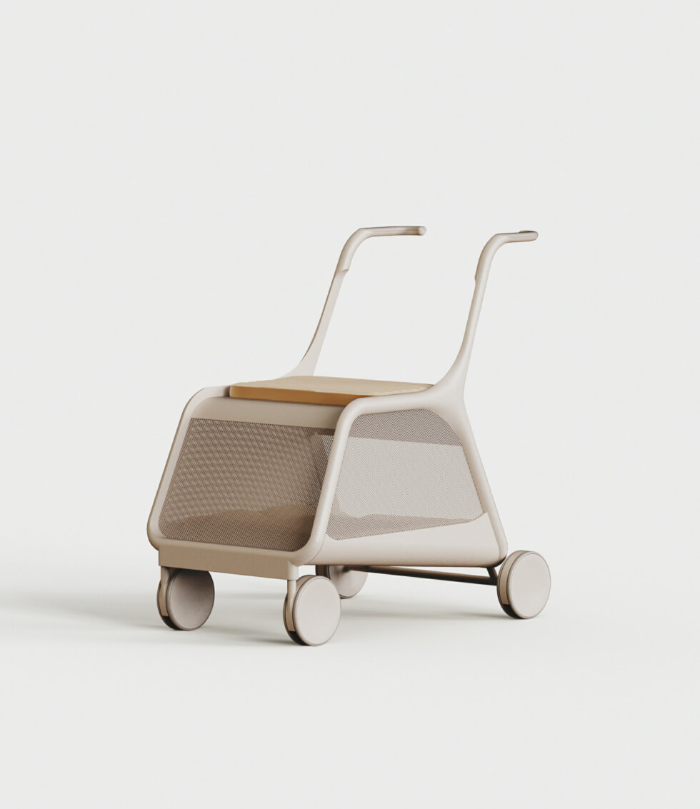 From the look of things, you have a stylish take on a rollator walker. It sports an almost organic outline courtesy of the frame’s sleek curves. To make turning easier, the TOOS features two large casters for the front, while the rear two are mounted on an axle. Elsewhere, a pet compartment is incorporated directly below the seat.