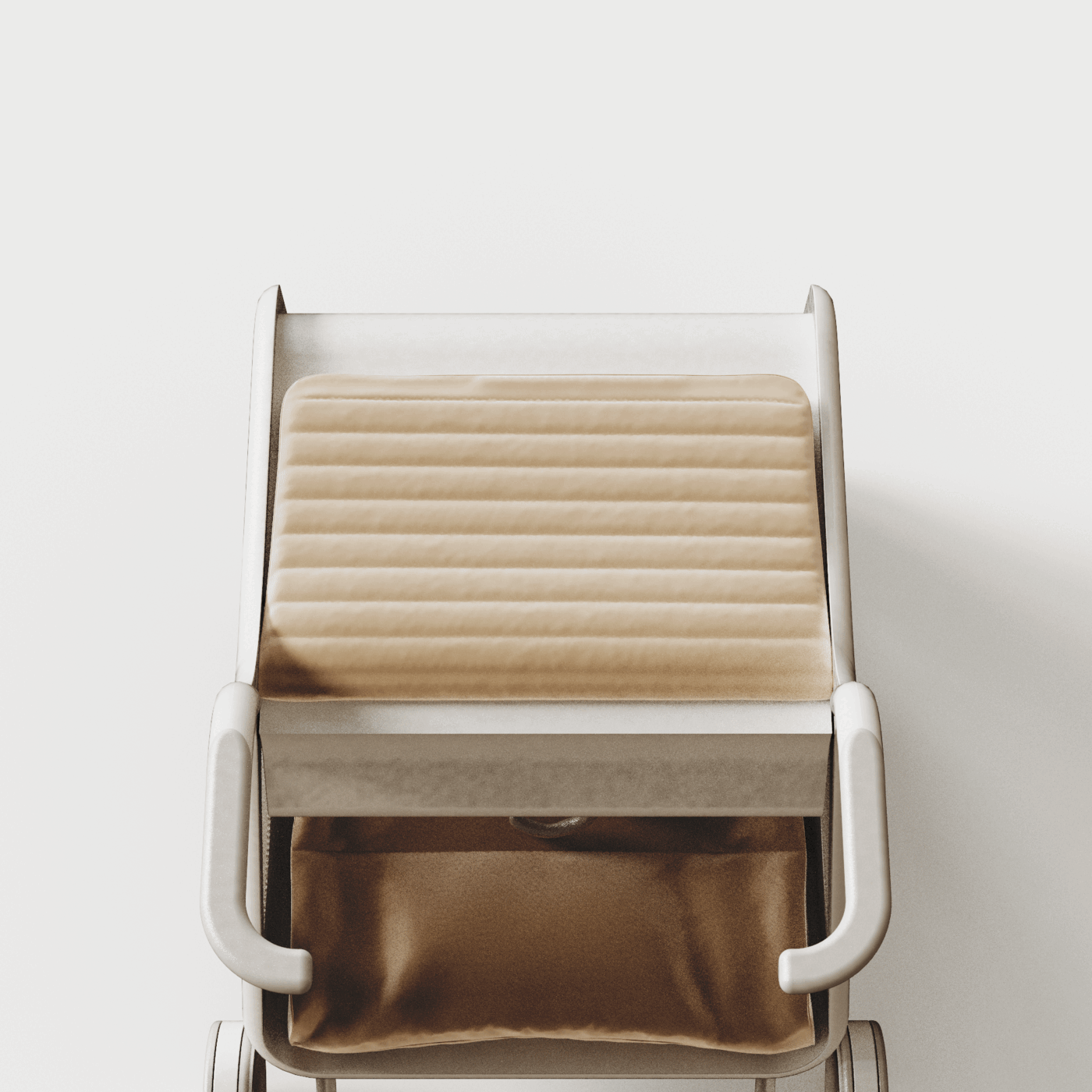 The undercarriage area includes a plush pillow for your dog, cat, or other critters. This section is likewise wrapped with mesh screens for adequate ventilation except for the rear. Like a regular rollator walker, it is not engineered to bear the full weight of the user. Instead, the TOOS assists with stability while walking and doubles as a portable chair.