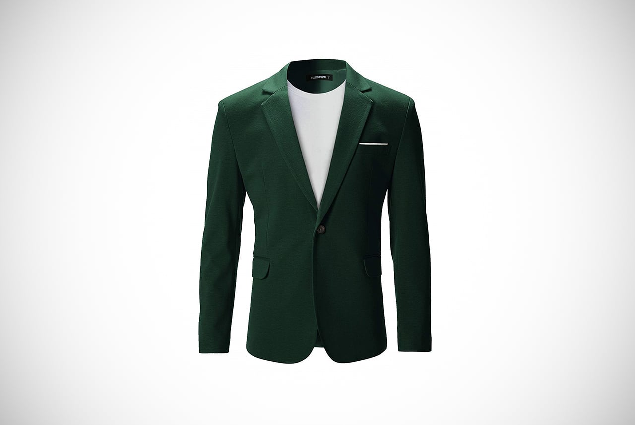 Made from 65% rayon and 35% polyester, these casual blazers for men do not offer the high-quality cotton or wool composition of other blazers. Despite this, it still delivers a high-class look. A single button provides a casual finish, along with flap pockets and a notched lapel.