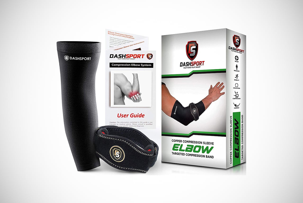 DashSport offers up their entry into the tennis elbow braces market with this premium-quality copper compression sleeve and elbow brace pairing. The sleeve is snug and offers a small measure of compression. Meanwhile, the elbow brace can be adjusted and provides the amount of support you need, whether that’s very strong or incredibly light.