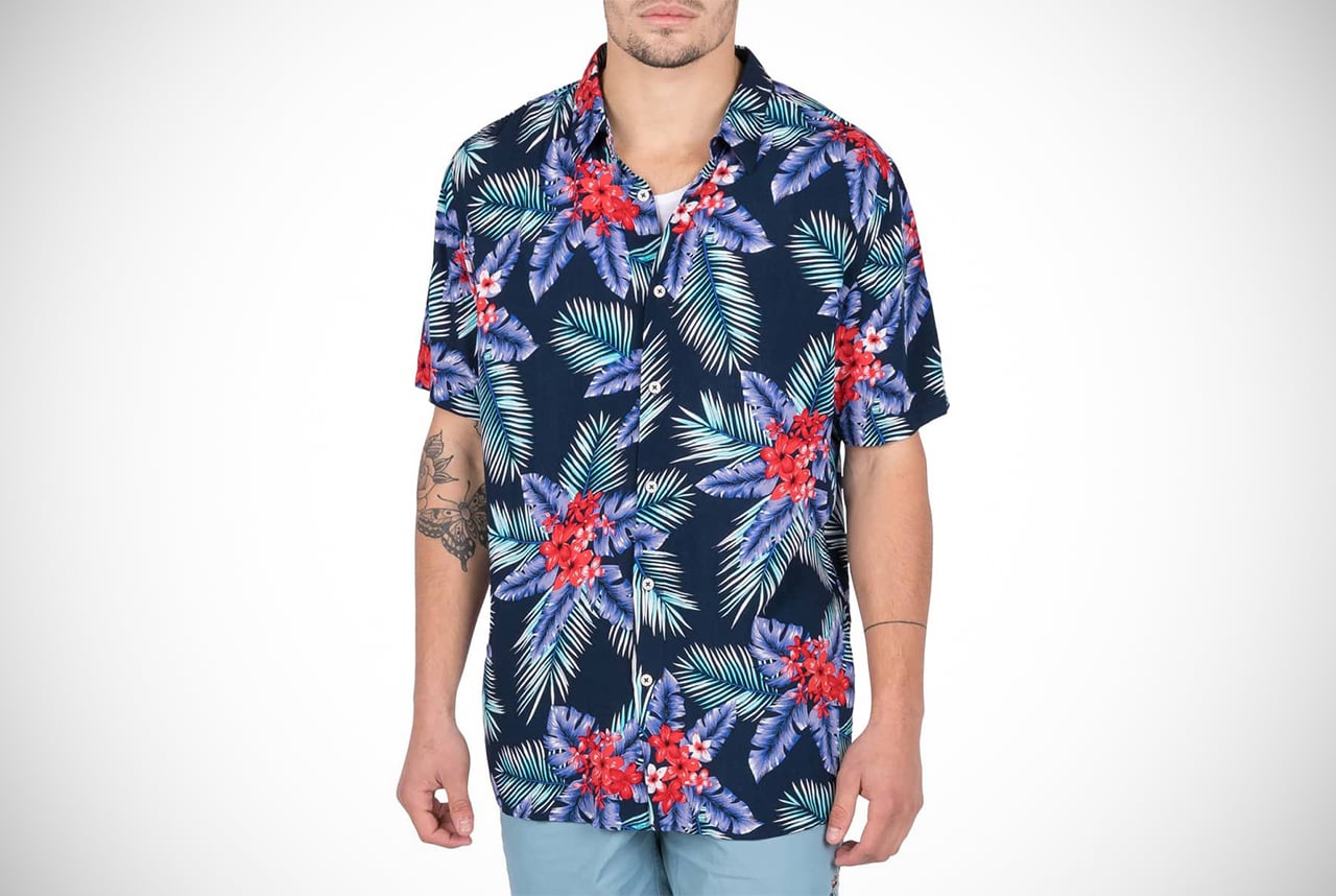 With Hurley’s experience as a streetwise designer making high-performance casualwear, their entry into Tropical Hawaiian shirts for men is not to be missed. It offers an elegant, bright set of floral patterns that are reminiscent of fireworks or sea anemones.
