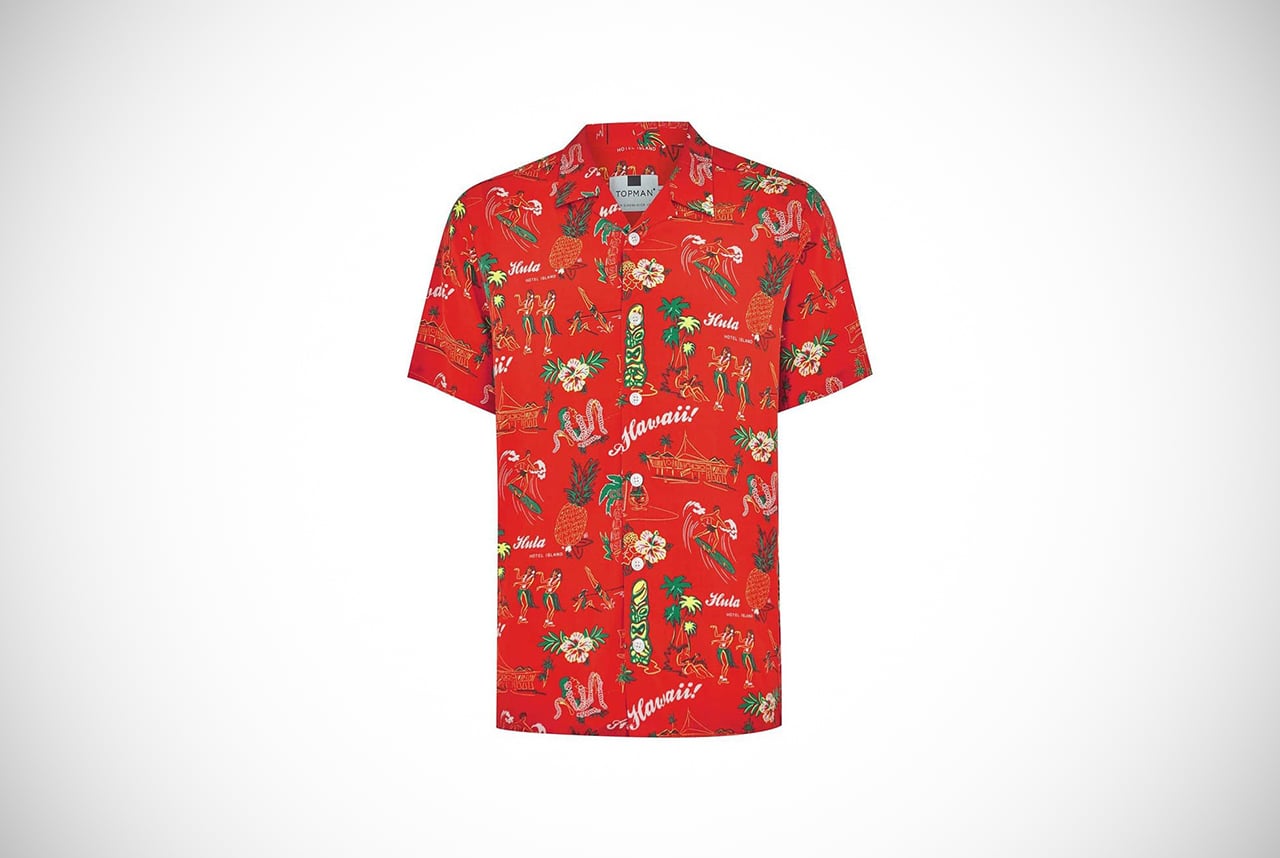With all this talk of sophistication, style, and nuance has its place, sometimes a man’s gotta do what a man has gotta do. By that, we mean pulling off the most outrageous Tropical Hawaiian shirts for men. This entry is one of the boldest on this list, with a bright, near-Christmas red. It also offers a veritable army of Hawaiian icons spread over the material.