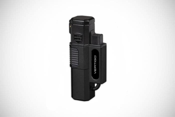 The Vertigo Quad 4 Torch lighter has it all in its name. This butane-filled lighter supplies a total of four wind-resistant torches which work simultaneously. The Vertigo Hornet is one of the more convenient cigar lighters on our list because of the included lanyard hole and ease of use. Operation is very easy as all you need to do is press a button to both release the lid and light the quad torches.