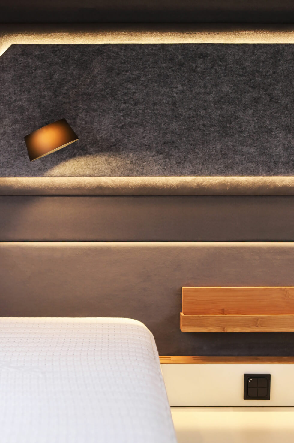 Furthermore, the seating area can turn into a guest bed, which is quite handy. Experience a cozy interior throughout the seasons courtesy of the roof-mounted AC system, underfloor heating, and auxiliary heating via a diesel generator. A space-saving bathroom is also part of the package. The Praetorian LIBERRA holds up 250 liters of fresh water with a 150-liter waste water tank.