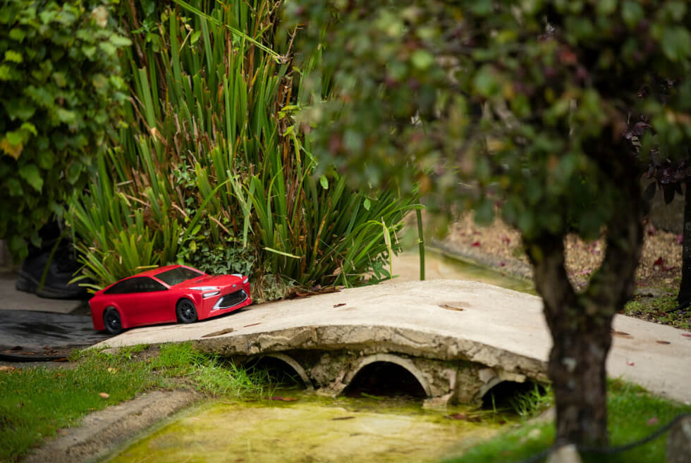 The full-size production model touts the sustainable powertrain. Toyota – with the help of Bramble Energy — is engineering smaller hydrogen fuel cell systems for the Mini Mirai. Meanwhile, Tamiya supplies the 1:10 scale RC car based on its popular TT-02 RC chassis kit.