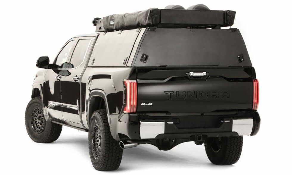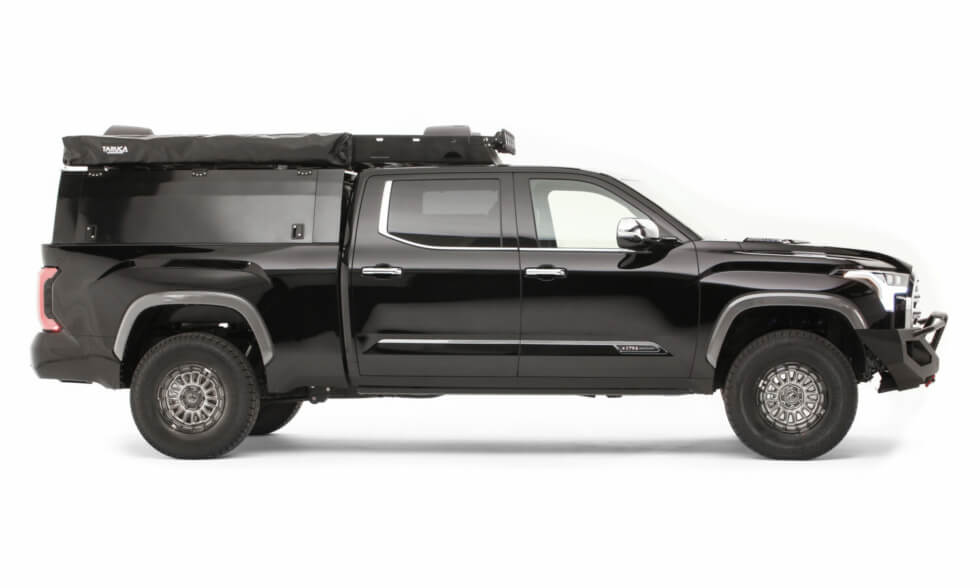Next is the JBL Club Marine A5055 amplifier with four Club Marine tower speakers and a Club Marine 600 amplifier with two 10″ subwoofers that supply immersive audio. Toyota also equips the Ultimate Tailgate Tundra with a 180 Dual + R-Filler canopy. It can cover up to 185 square feet from the heat.