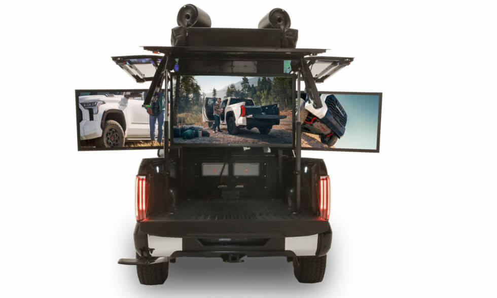 With the basics out of the way, the Ultimate Tailgate Tundra kicks it up several notches to become an entertainment powerhouse. According to Toyota Vehicle Marketing and Communications Manager Tyler Litchenberger, “This build is more of an audio-visual experience than a typical tailgate setup.” Power comes from a near-silent generator.