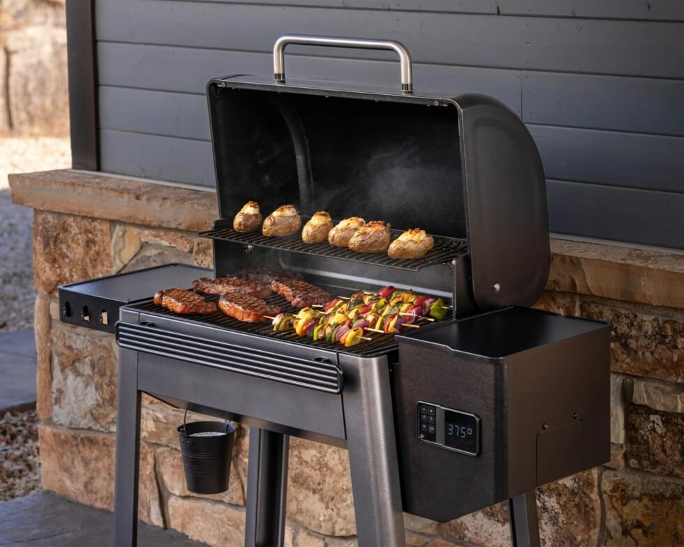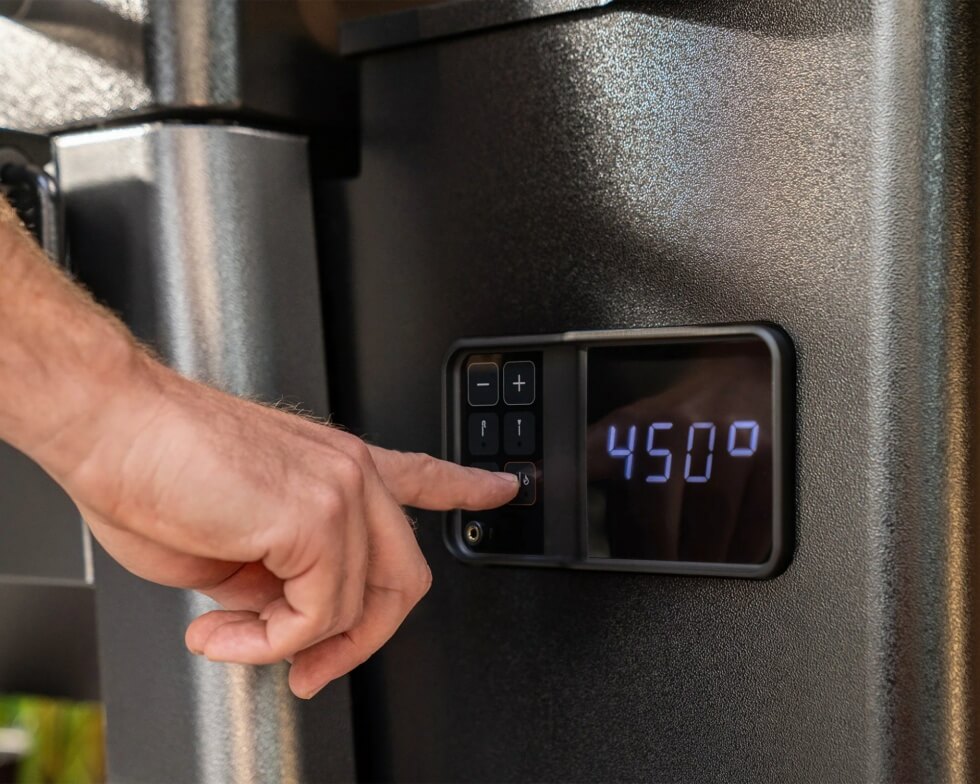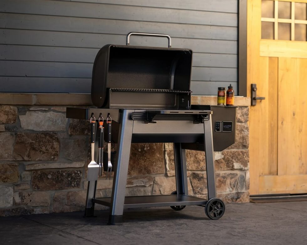 Both sizes feature a dual-tier design with two interior racks for added versatility and volume. You can cook anything from the main course to the dessert. The grills reach 180 to 450 degrees, allowing you to smoke meats low and slow or crank up the heat for burgers and pizza.