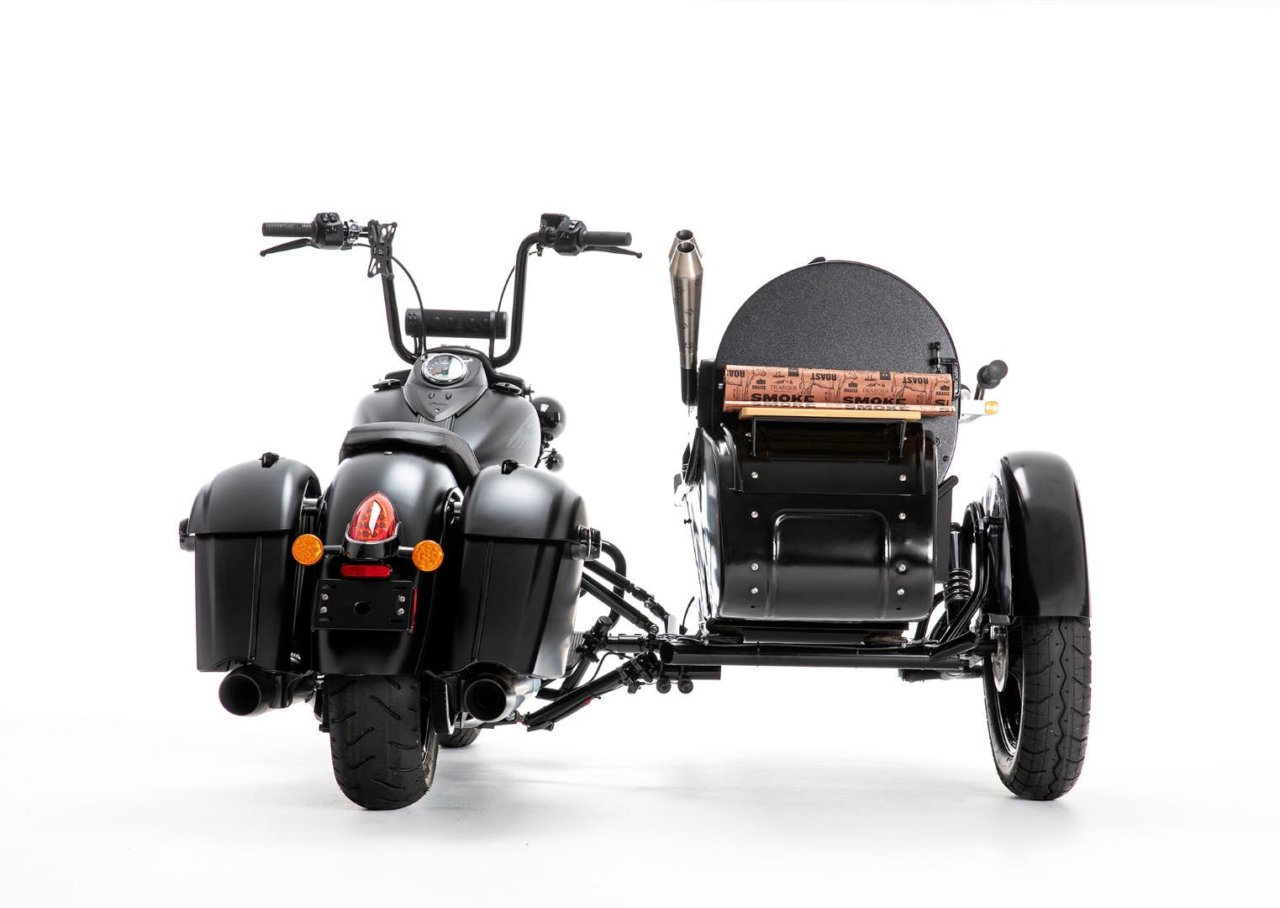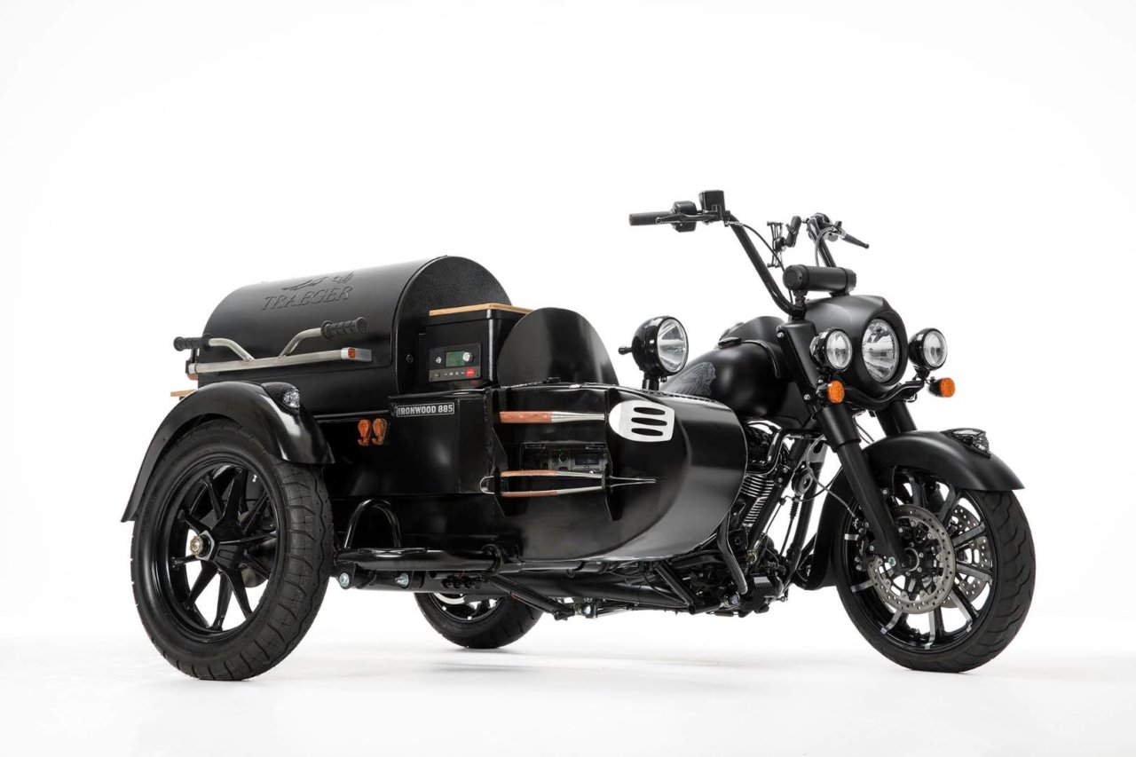 You can look forward to delectable treats grilled to perfection courtesy of a Traeger Ironwood 885. This unique setup is possible thanks to a custom sidecar that houses the cooking equipment. Mad props go to the genius behind this tasty combo, Thor Drake of See See Motorcycles. His creation is perfection on three wheels that lets you ride and enjoy an outdoor cookout wherever and whenever you want. While the sidecar handles the cooking, the brooding Springfield Dark Horse takes care of the leg work.