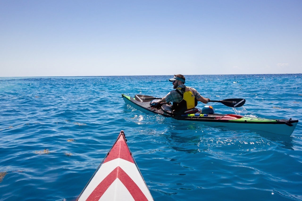 Rather than wood or bone covered in sealskin, the Trak 2.0 has a collapsible, rigid frame of aircraft grade aluminum and carbon fiber covered in expedition-grade polyurethane material. Once assembled, the Trak 2.0 is 16′ (4.9m) long by 22.5″ (57cm) wide in a classic Greenland design. One of the high-tech modifications is the adjustable rocker that allows you to change both freeboard and tension to meet changing water conditions.