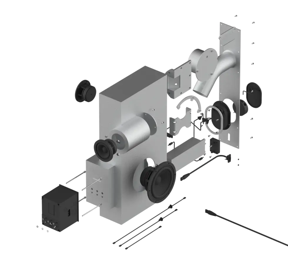 Each Brutalist Speaker measures 23.2″ x 14.2″ x 10.2″ and clocks in at about 26.5 lbs. It’s packing two 3″ tweeters, in a 90-degree placement with two bass drivers positioned in a similar fashion. The frequency response is at “32Hz — 20KHZ -6DB” with support for dual-band Wi-Fi (2.4 GHz/5 GHz) and Bluetooth 5.2. Stream your tunes via Spotify Connect, Amazon Music, Tidal Connect, and More.
