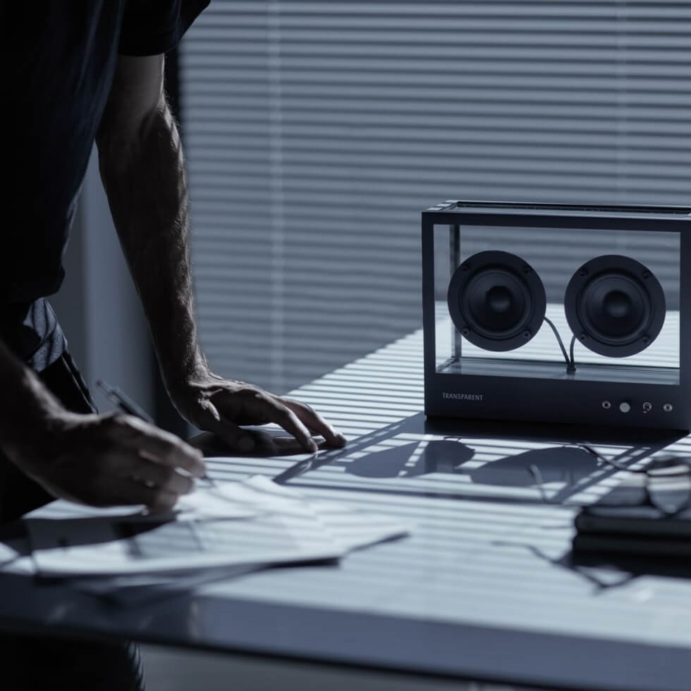 Furthermore, a hollow section of the base holds a USB-A port, a line-in jack, and DC port for the power brick. On top of its remarkable aesthetics, Transparent also markets the speaker for its modular capabilities. Owners can connect a third-party Wi-Fi adapter or voice control module. Once the full-range drivers are replaceable as well. This makes the Small Transparent Speaker a sustainable choice for any home.