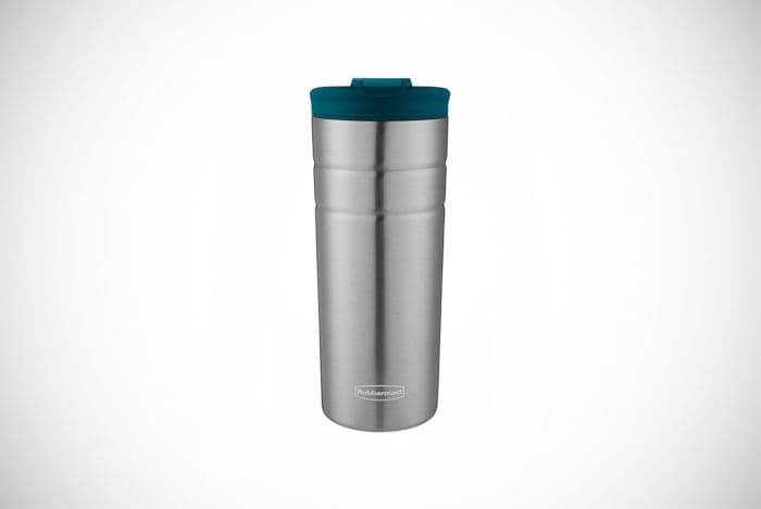For the budget conscious (tightwads) among you that don’t want to spend much more than it would cost you for a single Starbucks coffee on a travel mug, we actually have a very impressive product that belies its cheap price. That is the 16oz Rubbermaid Leak Proof Flip Lid Thermal Bottle.