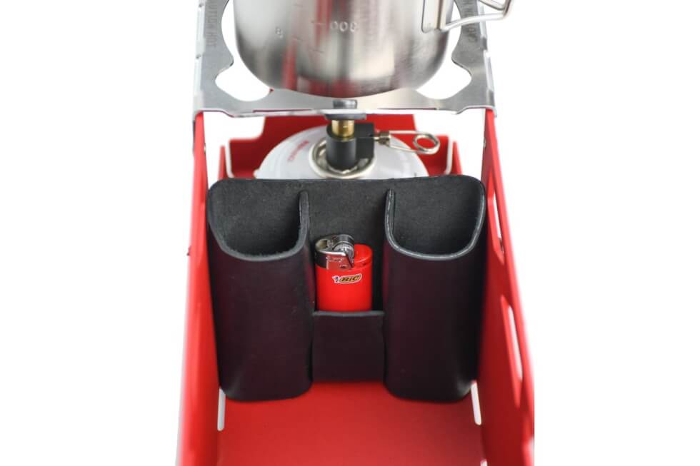 We like how Trayvax went with a dual-tone colorway for the body. The red powder coat and satin-brushed metal part make it highly visible at night. In addition to holding your tools and ingredients/snacks, the Ration also doubles as a camp stove. It has a cooking grate to support your small to medium-size pots and pans.