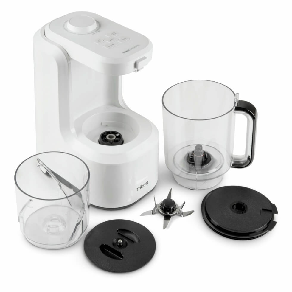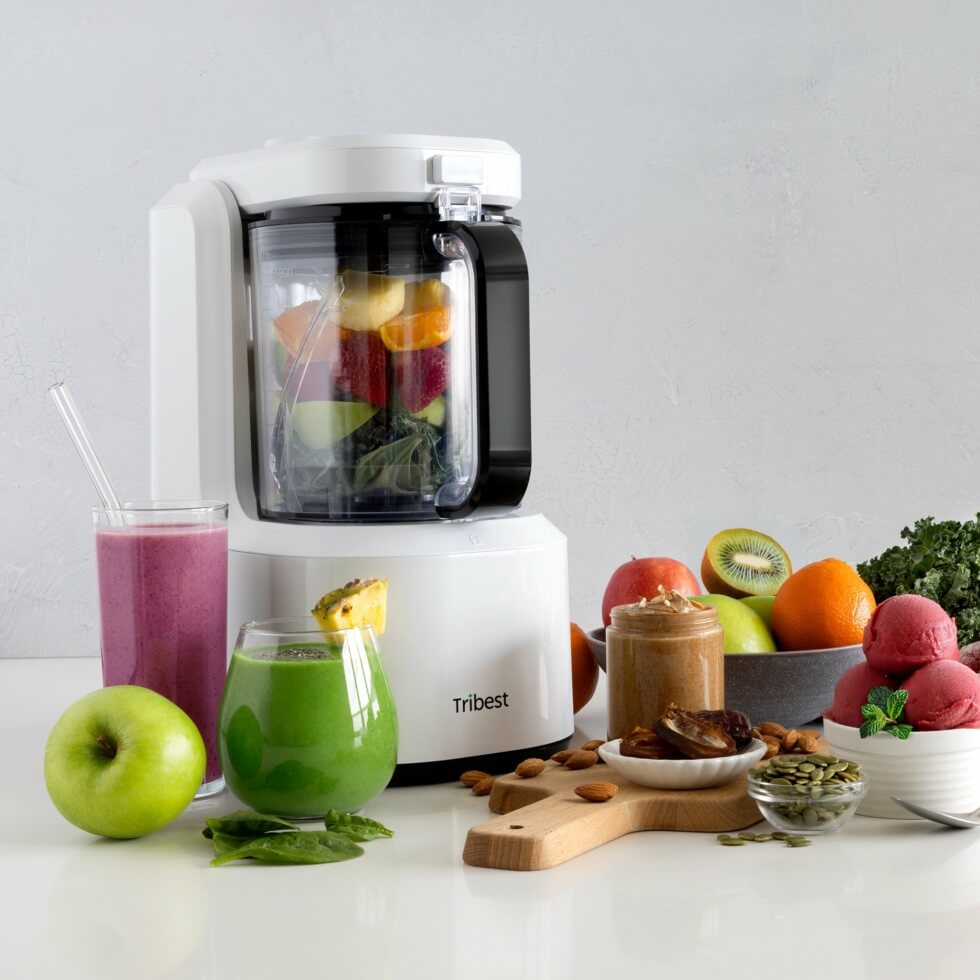 This results in 100% hands-free blending sans the need to tamp or scrape down the sides of the jar. Tribest’s Backspin can blend whole fruits and vegetables with minimal pre-chopping and handles even dry, sticky ingredients without needing to add liquid. It consistently delivers even and thorough blends.