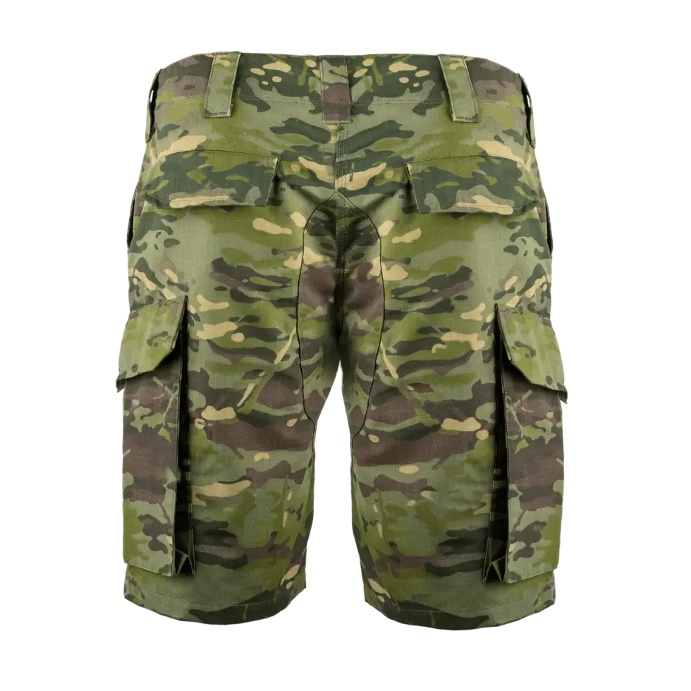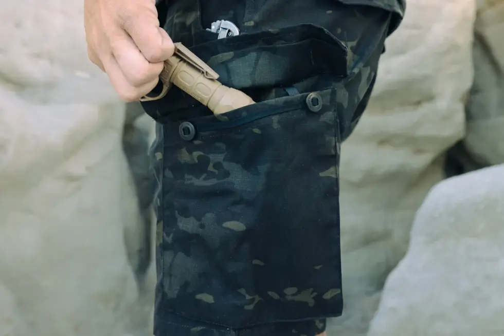 These shorts have an overbuilt construction packed with ample storage, both accessible and concealed. There are two drop-in front welt pockets with external D-rings perfect for dummy cording critical gear. Likewise, it has secure bellowed cargo pockets with internal gear organizers and webbing rails, perfect for keeping multi-tools in place.