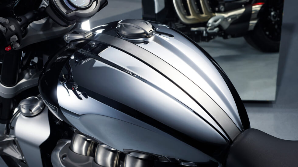 Moreover, Triumph’s team of motorcycle artisans endows the fuel cells with intricate details. These include pinstripes, brushed aluminum fenders, side panels, headlight shrouds, and mudguards. Some parts are in black to contrast the sheen of chrome elements.