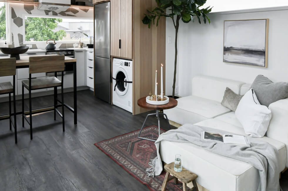 Tru Form Tiny doesn’t skimp on the finer things in life when it comes to tiny house living. The company puts a twist on the the less is more adage by adding “more” on a tiny scale. This means blending luxury and modern living in a compact home layout, as shown by its remarkable Urban Park Max design.