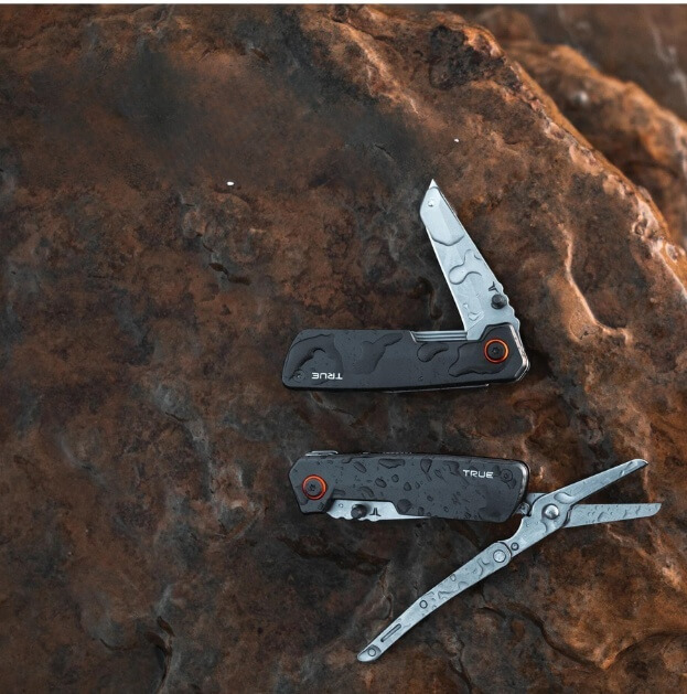 True Utility’s Dual Cutter lets you get the job done when it comes to setting up a fire or prepping a meal while in the great outdoors. This sleek multitool offers both the cutting and slicing power of a knife and a pair of scissors that is larger in size compared to those found in other pocket tools.