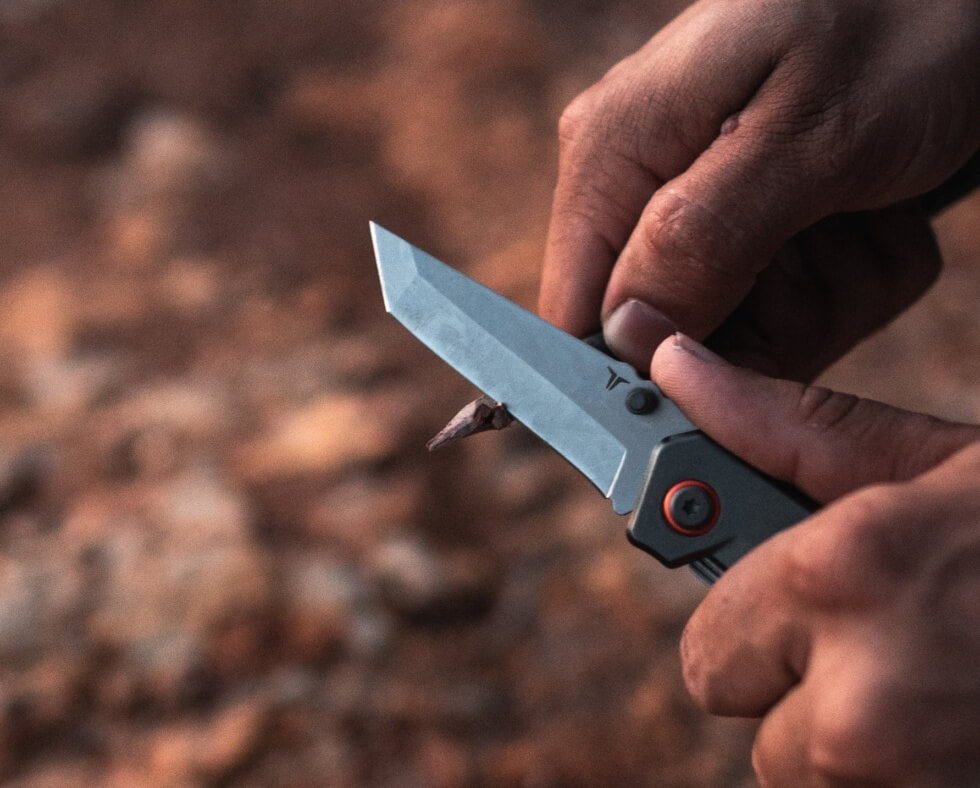 This is a 2-in-1 cutting tool that houses a 7cm fine-edge sandblasted Tanto blade set securely in place via a liner lock and easily deploys with just one hand. The triangular shape of the blade offers increased tip strength which makes it ideal for piercing tasks. It also provides two distinct sharpened edges for added functionality so it can do more than just pierce but also cut, stab, and slice.
