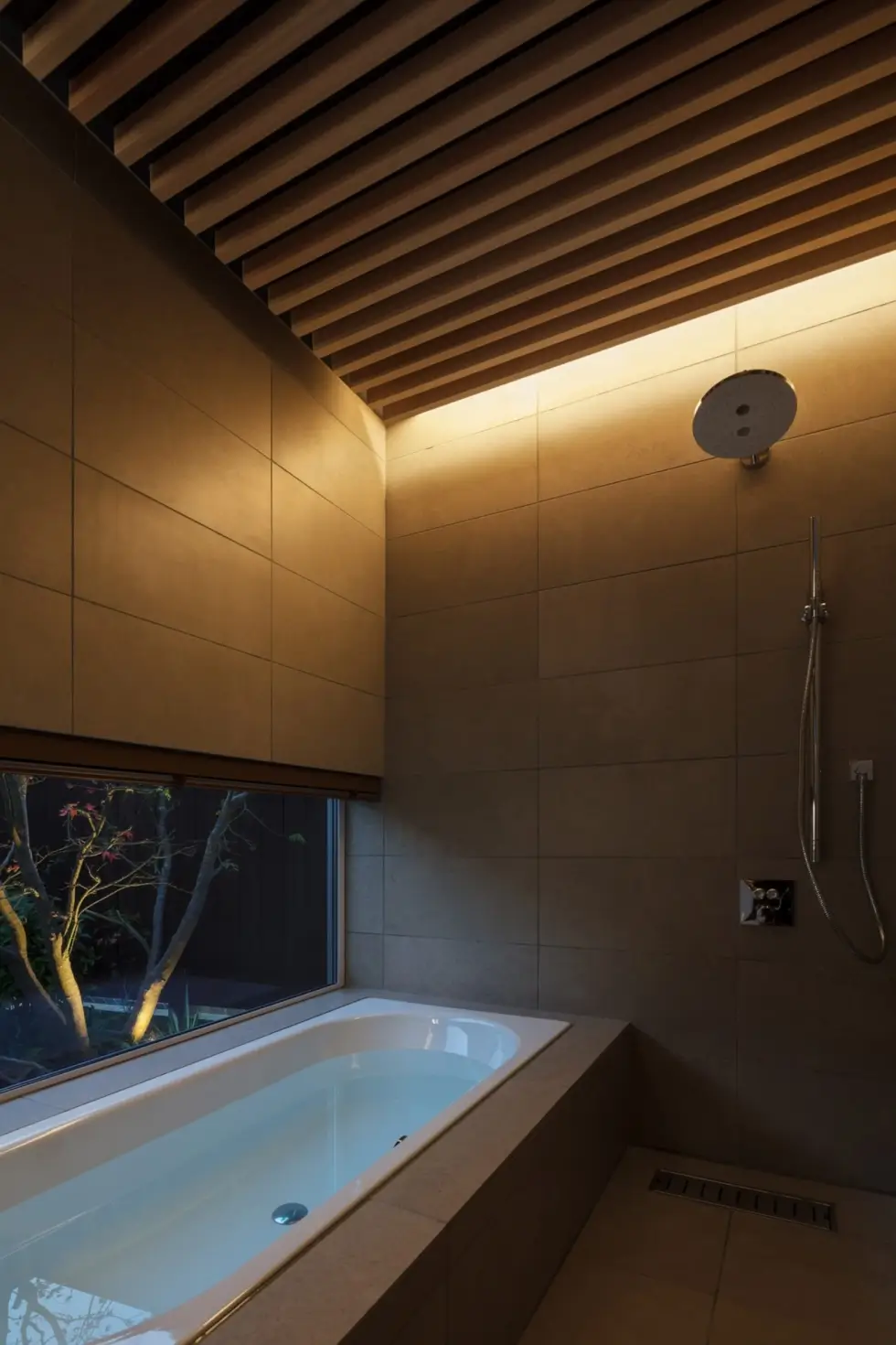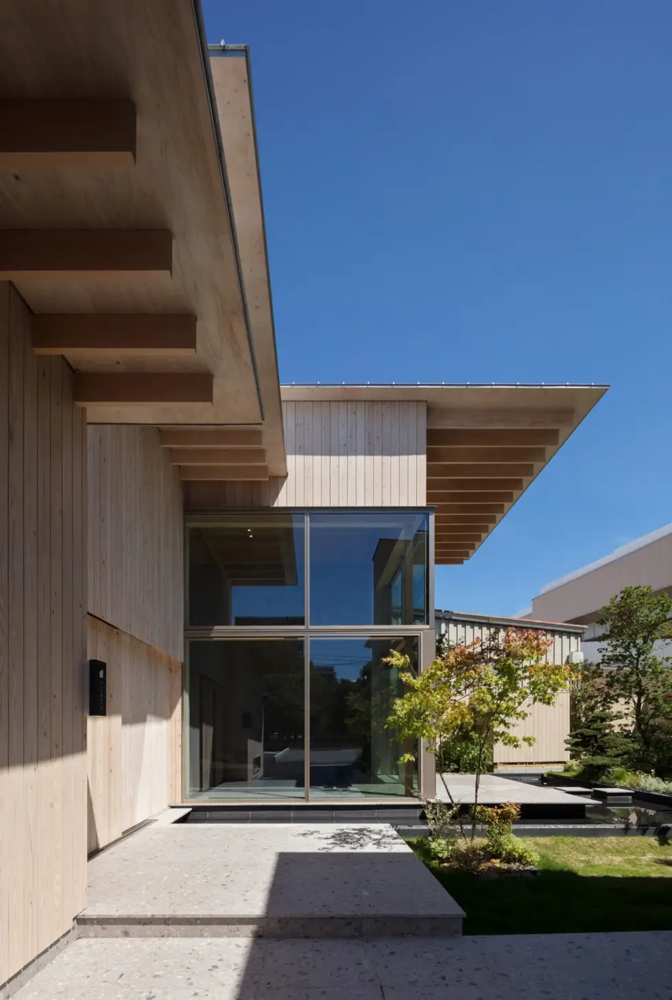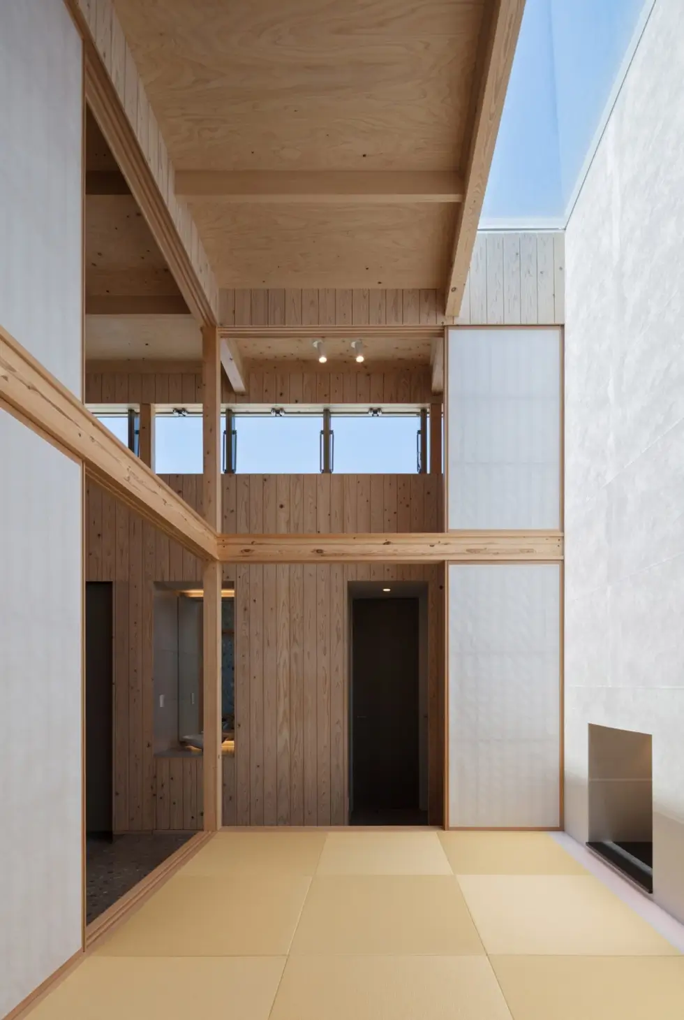 While some residences stand out among their surroundings, this one opts for the opposite with its humble timber-clad aesthetic. The façade allows the Tsumugu to appear traditional and understated enough to highlight its Zen-like motif. From the outside, it appears to be three separate volumes, but the inside tells a different story.
