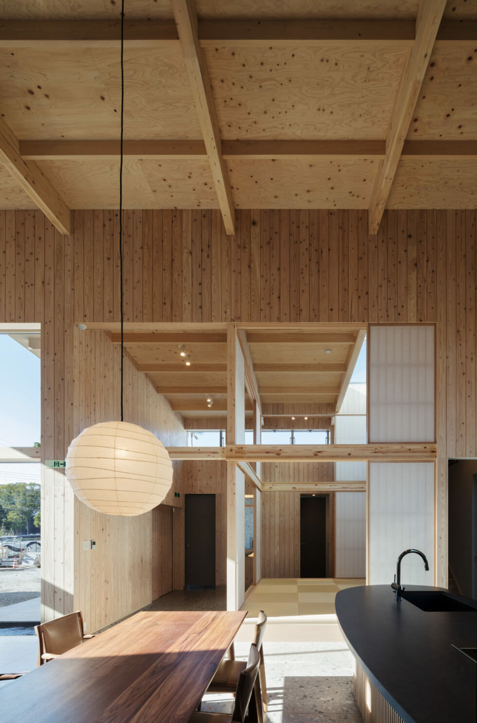 Instead of hiding the framework, they are leaving them in the open which adds character to its interiors. “Using timber from the lush green Kyushu region as building materials, incorporating natural energy, and using local wisdom and power are at the core of our products,” writes Archipatch about the Tsumugu.