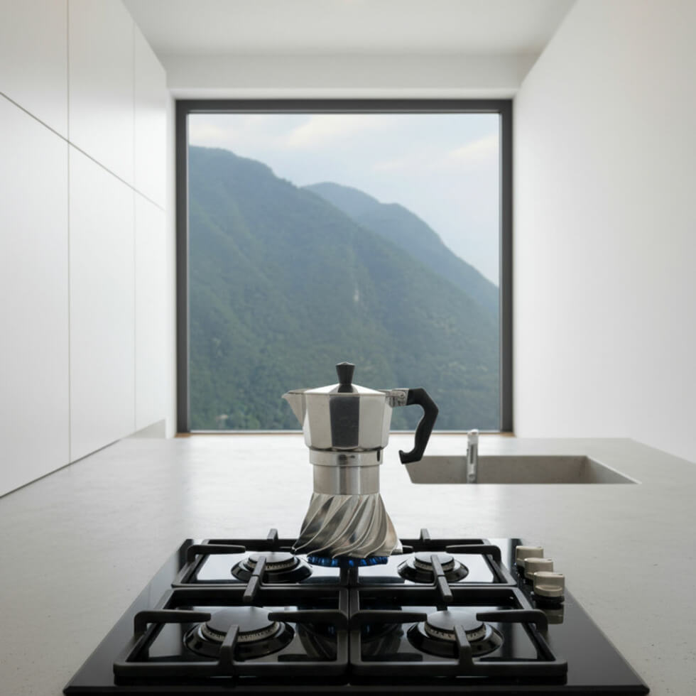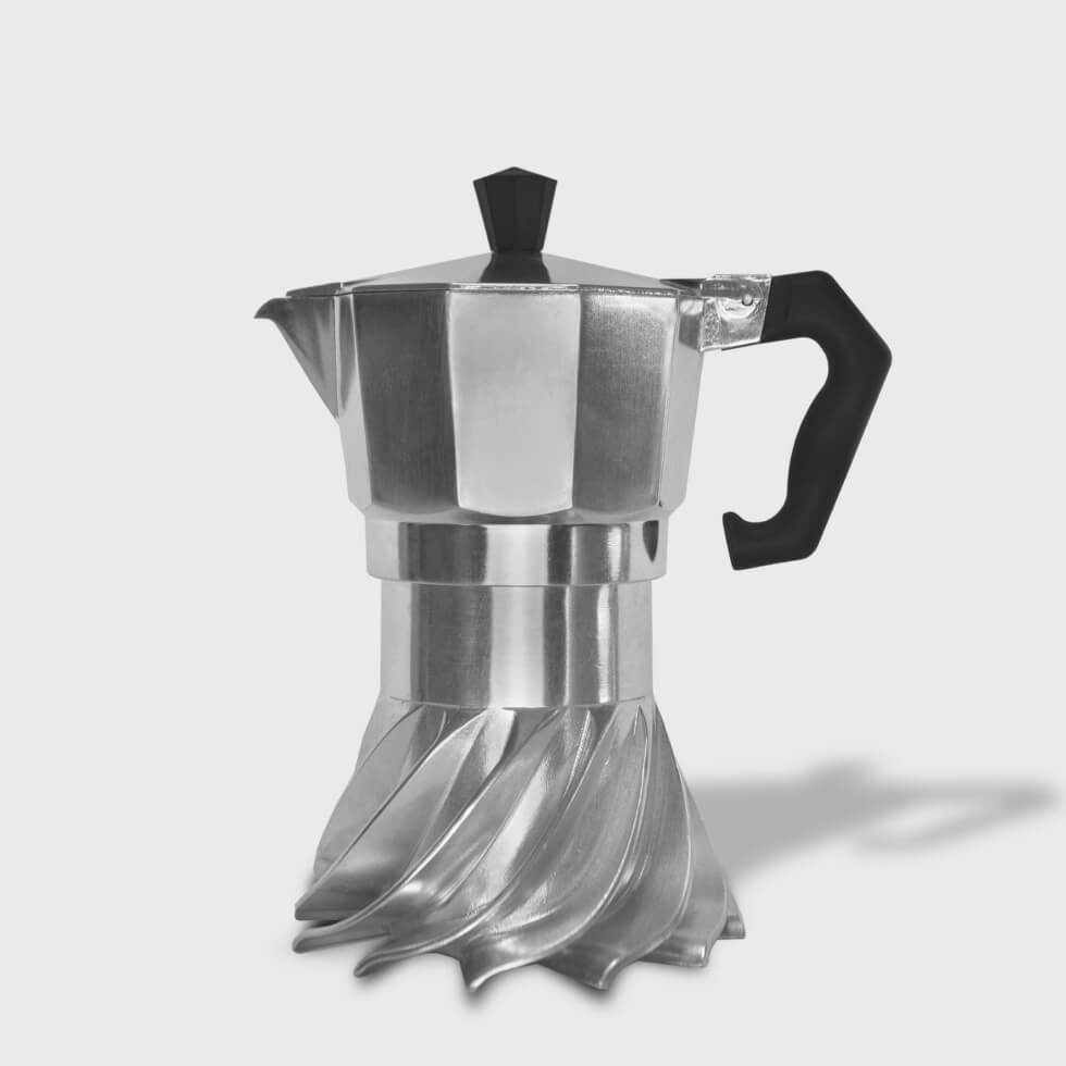 Making coffee using a Moka Pot requires patience because of the lengthy brewing time. But the Turbo Moka is unlike any of its kind. It brews faster thanks to an innovative design inspired by aircraft turbine geometry.