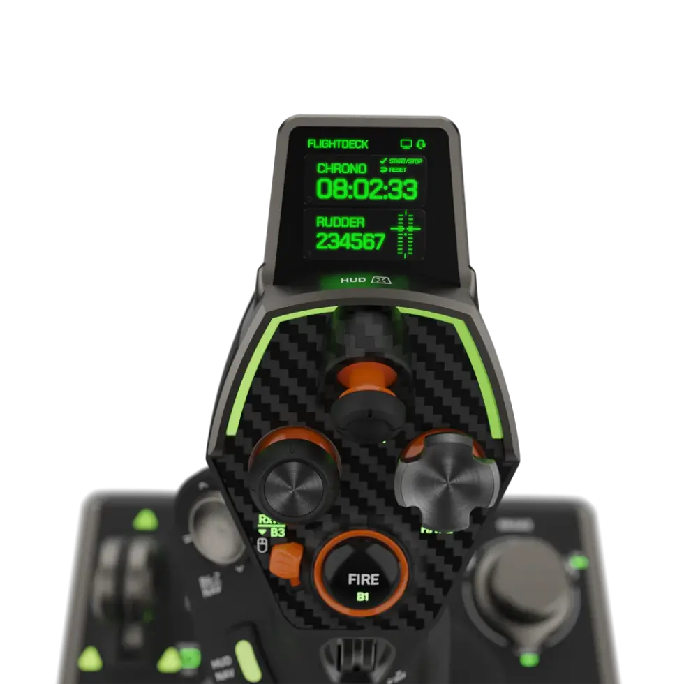 The VelocityOne Flightdeck is designed with personalization in mind. Given some aircraft feature different control layouts, Turtle Beach introduces the Flight Touch Display. It “combines real-time sim status indication with advanced customization with up to 39 extra button functions set to your configuration.”