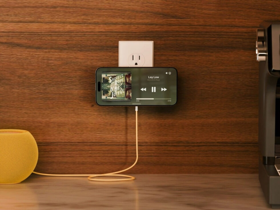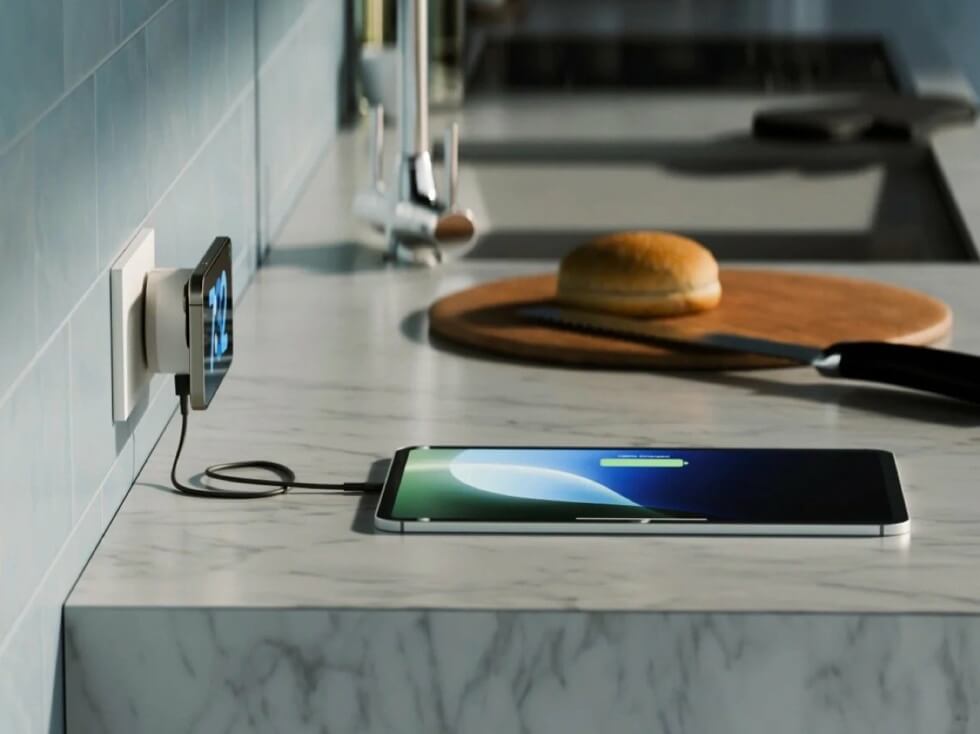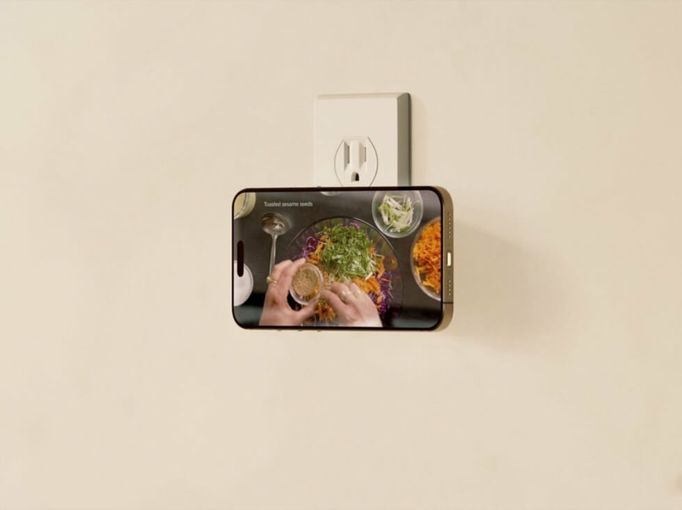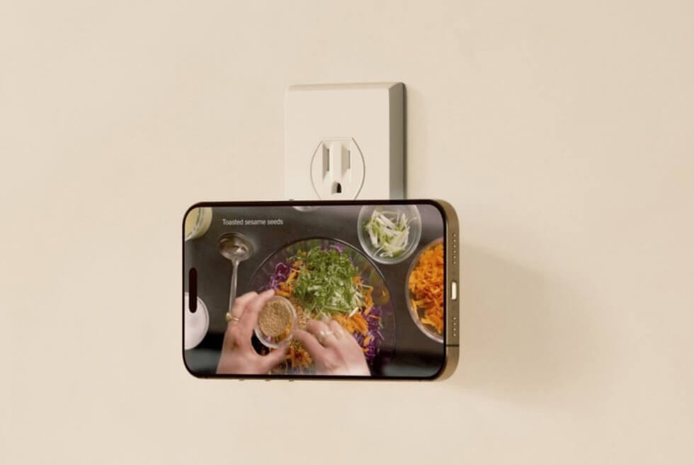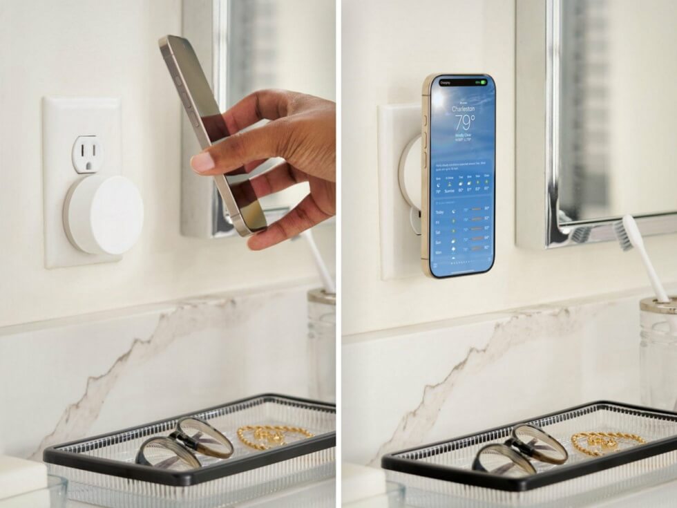 It plugs directly to the electrical outlet via foldable prongs. It’s like a puck that protrudes from the wall with Qi2-compatible 35W coil inside. It functions like a MagSafe Qi-wireless charger that les you attach the phone directly for automatic wall-mounted charging. No docks, no hands, and no messy cables.