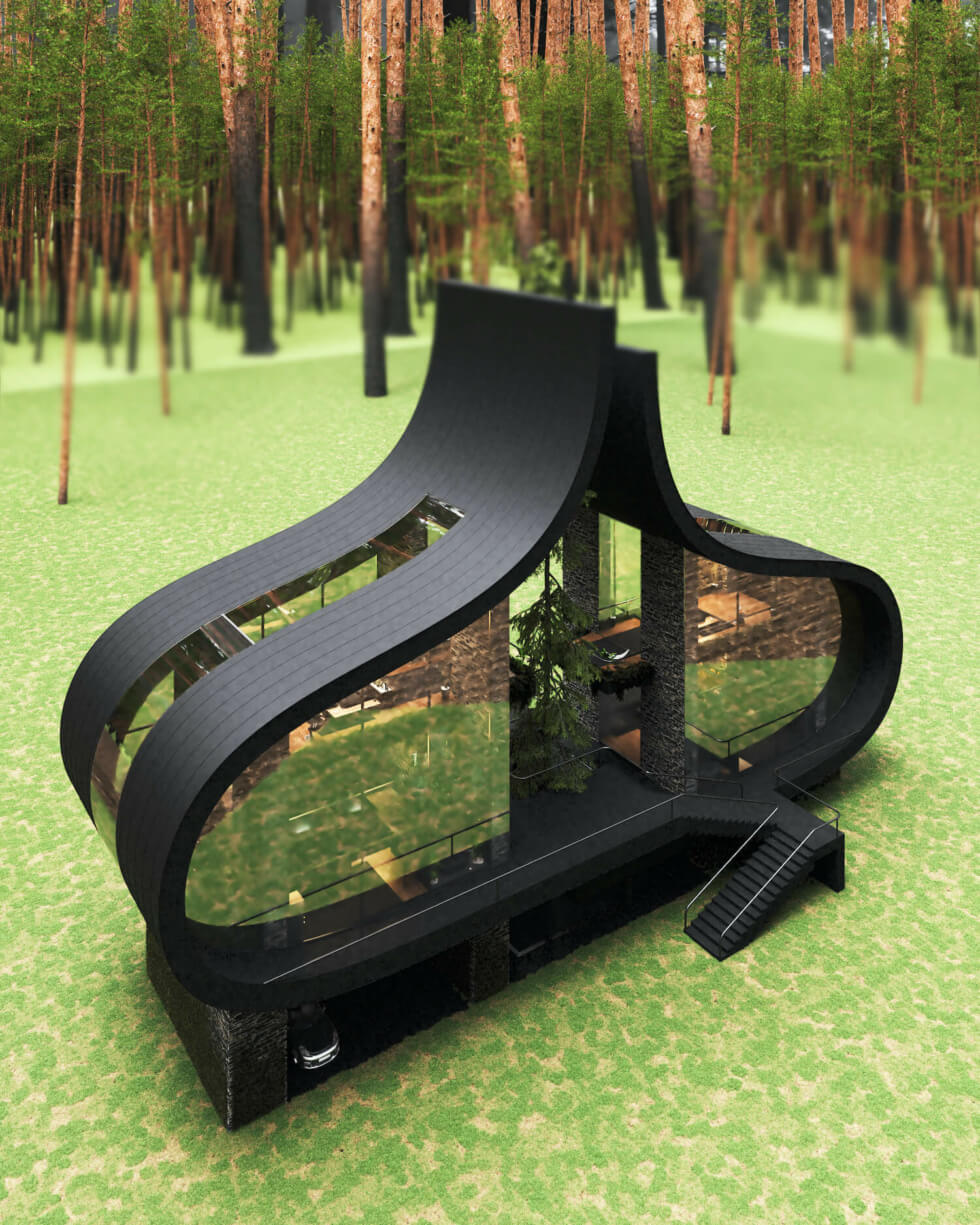 Iranian architect Milad Eshtiyaghi is known for his eccentric yet unique house structures. Take for instance the Twin Sisters house in Mārupe, Latvia. It sits looking domineering yet elegant in all its black glory among its forest topography.