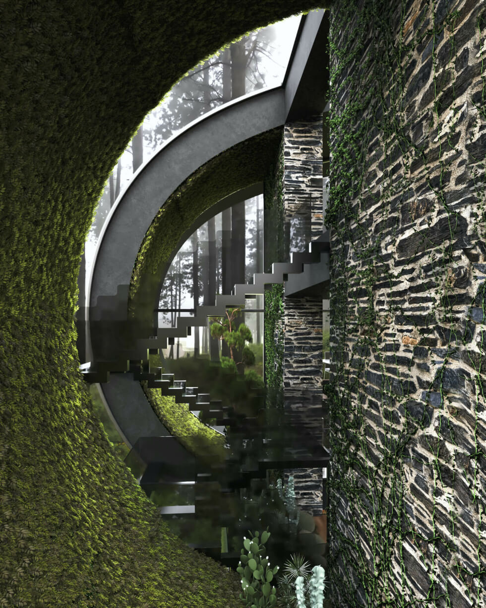 The two units are adjacent to each other like neighbors and their external form should mirror one another. Moreover, the curved shape of each building takes inspiration from the idea of the shape of the sisters’ hair in the wind. The slope is from the climate of the project site.