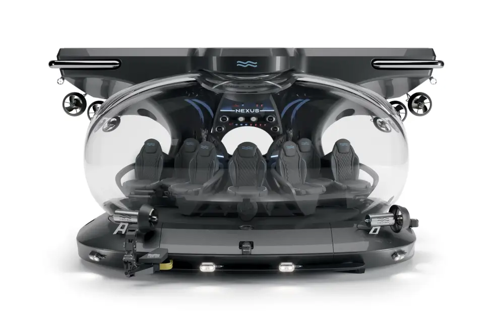 Modular systems make it possible to accommodate six adults, two children, and the pilot for a total of nine. The NEXUS can dive up to depths of approximately 650 feet and cruise at a speed of 3 knots. It is powered by a 62 kWh battery with eight thrusters for outstanding maneuverability. U-Boat Worx says it can remain operational for up to 18 hours on a single charge.