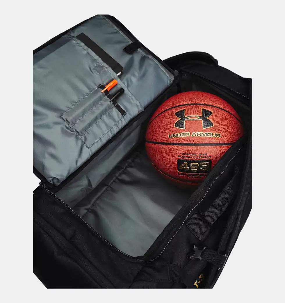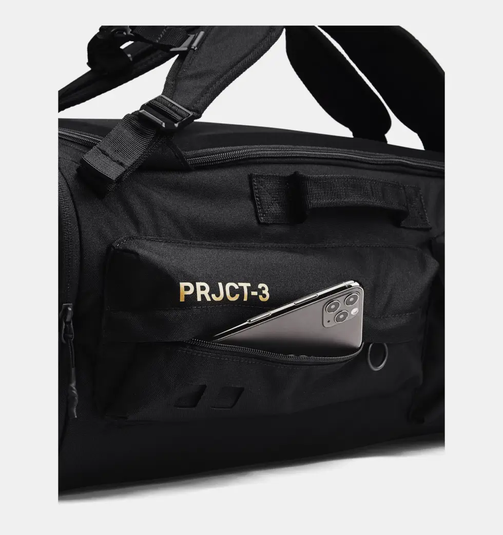 The Under Armour Project Rock Duffle Backpack has a dedicated, soft-lined sleeve that can hold a 15″ laptop and has organization pockets to keep small items. It has a Tricot-lined pocket to store your valuables and a couple of secure snap exterior pockets. This way you can easily grab those things you want at close hand.
