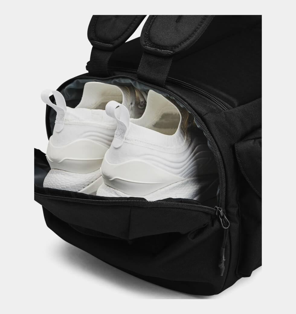 Meanwhile, the main large compartment offers more open storage space while a separate large, gusseted pocket keeps your shoes or laundry secure at the bottom of the bag. There are also two side pockets to store water bottles.