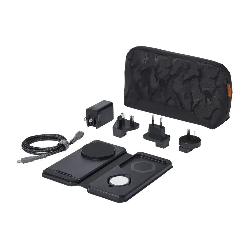 UAG even included a tech organizer pouch to safely store the SRGE 3-in-1 Travel Charger. Inside the pouch is a rugged 4 feet braided USB-C cable, a 25W global power adaptor, and three different charging tips which come in handy during international travel.