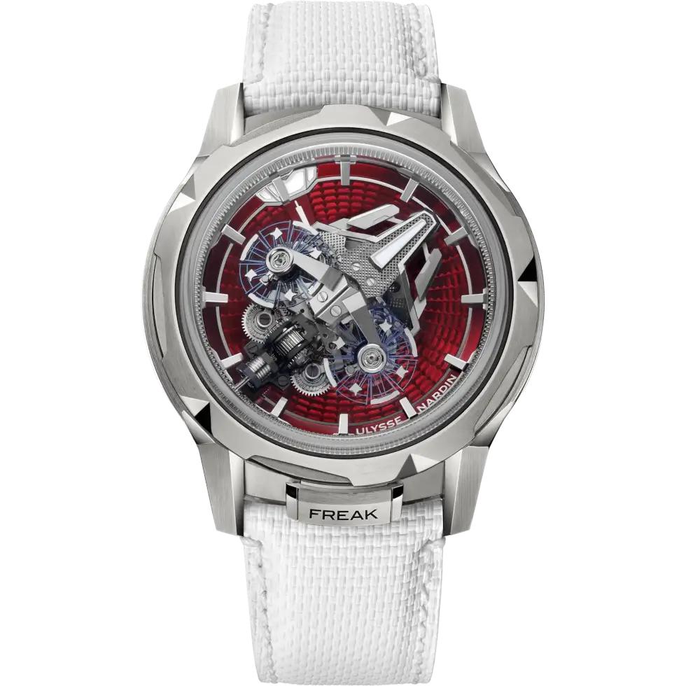 It’s a flying carousel self-winding movement with two 20-degree-inclined oscillators on silicon balance wheels. With a 72-hour power reserve, you’ll rarely need to manually prime the Freak S ENAMEL unless it’s out of your accessory rotation for quite a while.