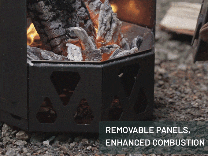 Removing a few panels lessen the heat intensity while using all maximizes output, which is useful for cooking or warming up in the cold. You can also have unobstructed fire view and see the flames dance using just three of four panels and the remaining panels act as reflectors to aim the warmth toward you.
