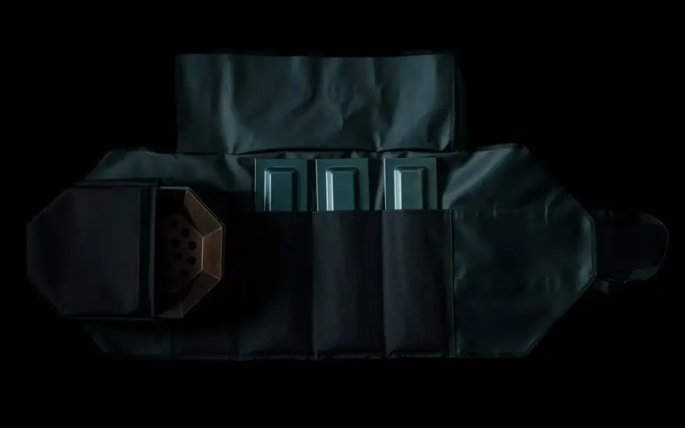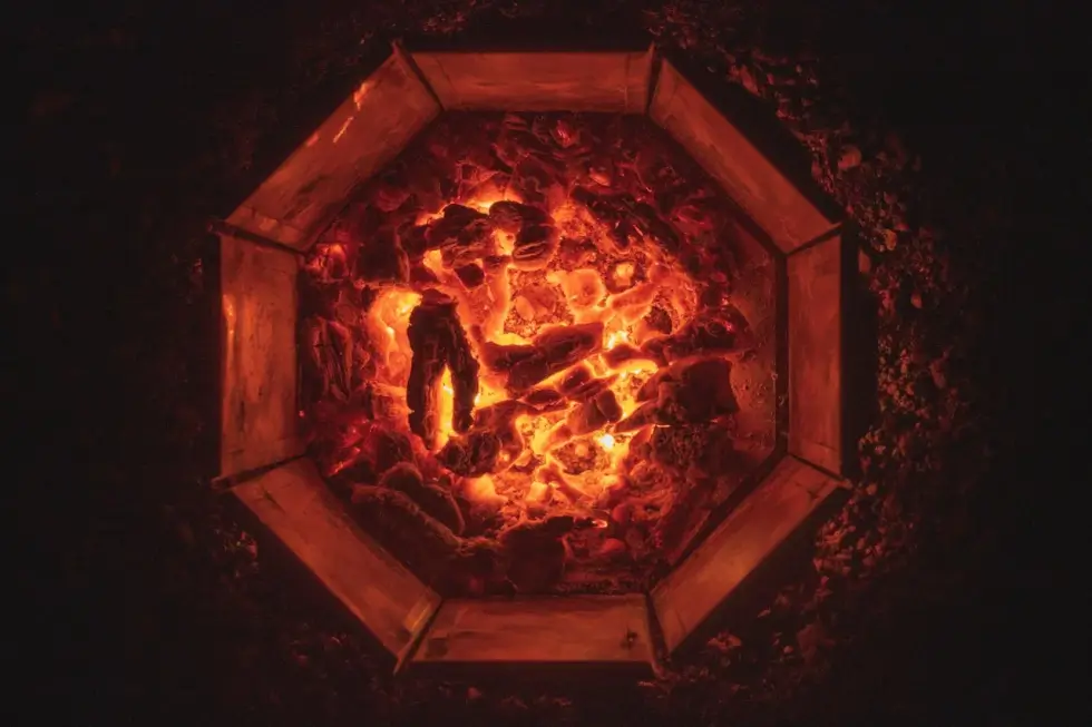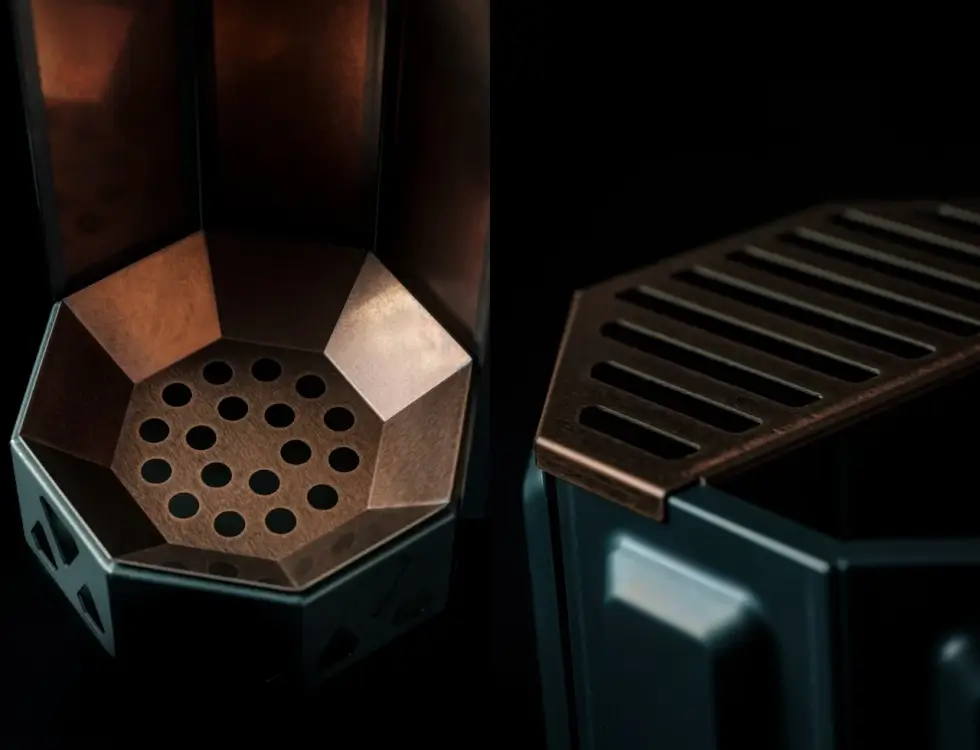 Made in Japan, the UM 8-Panel Fire Pit is crafted for both durable functionality and aesthetics. The exterior black color on the panels is not paint but a result of a unique mill scale coating process that imparts a rustic charm that matures with use. Meanwhile, the interior is corrosion-resistant stainless steel that turns a rich bronze when heated.