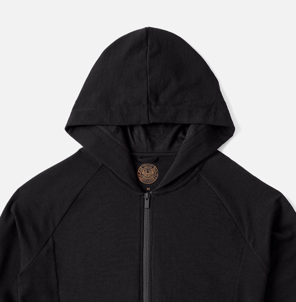 The Unbound Merino x Carryology Meili Travel Hoodie uses Merino wool because of its excellent properties. It is wrinkle-resistant and helps regulate body temperature by keeping you cool when it’s hot outside or keeping you warm when it’s cold. It also wicks away moisture, is antimicrobial and dries very fast.