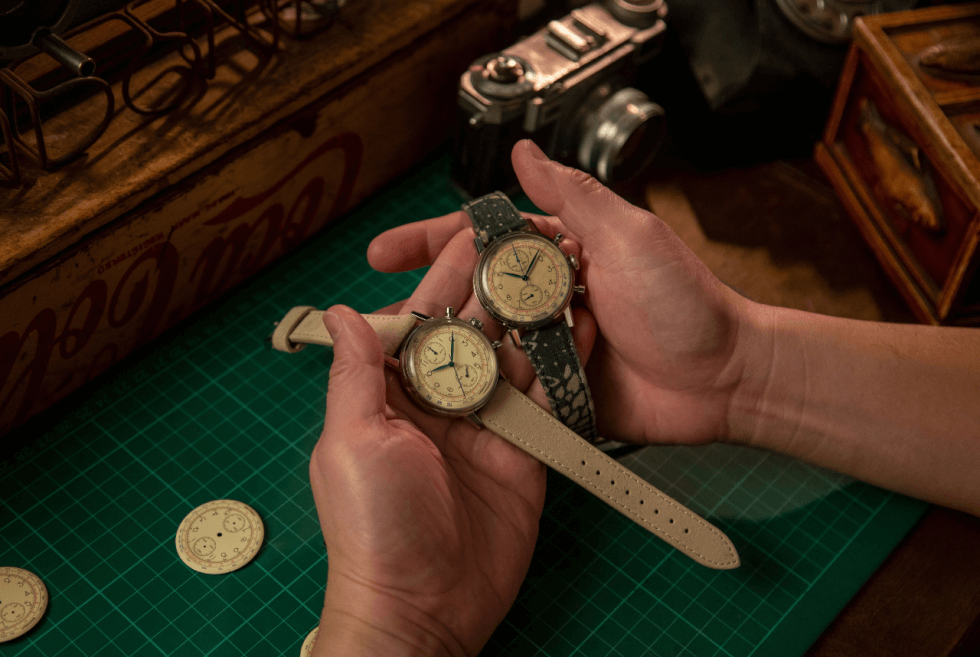 Moreover, for the added splash of old-fashioned flavor, the timepiece is paired with an exquisite Katazome fabric strap. These features, combined with the watchmaker’s broad personalization options, can turn each Vintage Killy: The Designer’s Draft Edition into a one-of-a-kind limited-edition chronograph.