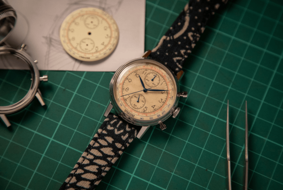 Finally, completing the look is the strap. For those wondering, Katazome is a method of dyeing fabric that originated in Japan. UNDONE is sourcing this from Meiji-era fabric that’s over 150 years old. Moreover, this means each watchband sports a distinctive pattern, which makes each Vintage Killy: The Designer’s Draft Edition unique.